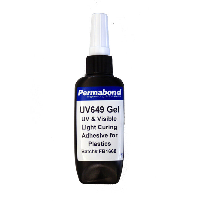 Permabond UV649 is een ééncomponent, snel uithardende en UV-uithardende lijm die speciaal ontworpen is voor het verlijmen van kunststoffen. Dit materiaal heeft een uitstekende hechting op diverse kunststoffen, waaronder polycarbonaat, maar ook op metalen en glas. Permabond UV649 heeft een zeer hoge afschuifsterkte, rek en slagvastheid, waardoor het ideaal is voor toepassingen waarbij substraten met verschillende thermische uitzettingscoëfficiënten nodig zijn. Permabond UV649 heeft een goede uithardingsdiepte waardoor het geschikt is voor gebruik als afdichtingsmiddel.